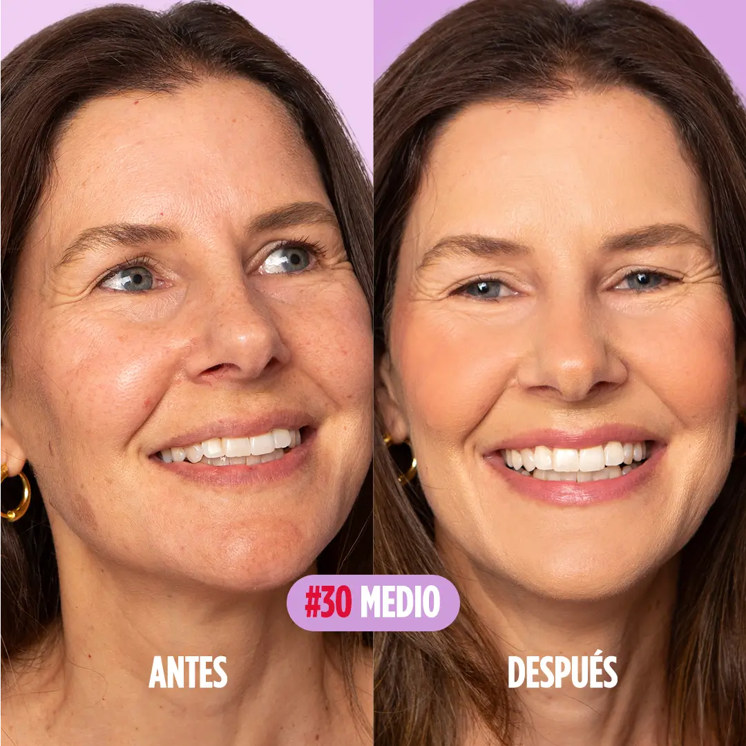 Piel con manchas: Su cobertura media unifica el tono y cubre las manchas mientras previene la aparición de nuevas.